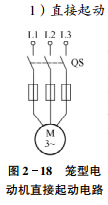 直接起動(dòng)也稱全壓起動(dòng),這種方法是在定子繞組上直接加上額定電壓來(lái)起動(dòng)的,其電路如圖2 - 18 所示。如果電源的容量足夠大,而電動(dòng)機(jī)的額定功率又不太大( 根據(jù)經(jīng)驗(yàn),電源容量一般應(yīng)大于電動(dòng)機(jī)容量的5倍).則電動(dòng)機(jī)的起動(dòng)電流在電源內(nèi)部及供電線路上所引起的電壓降較小,對(duì)鄰近電氣設(shè)備的影響也較小,此時(shí)便可采用直接起動(dòng)。
